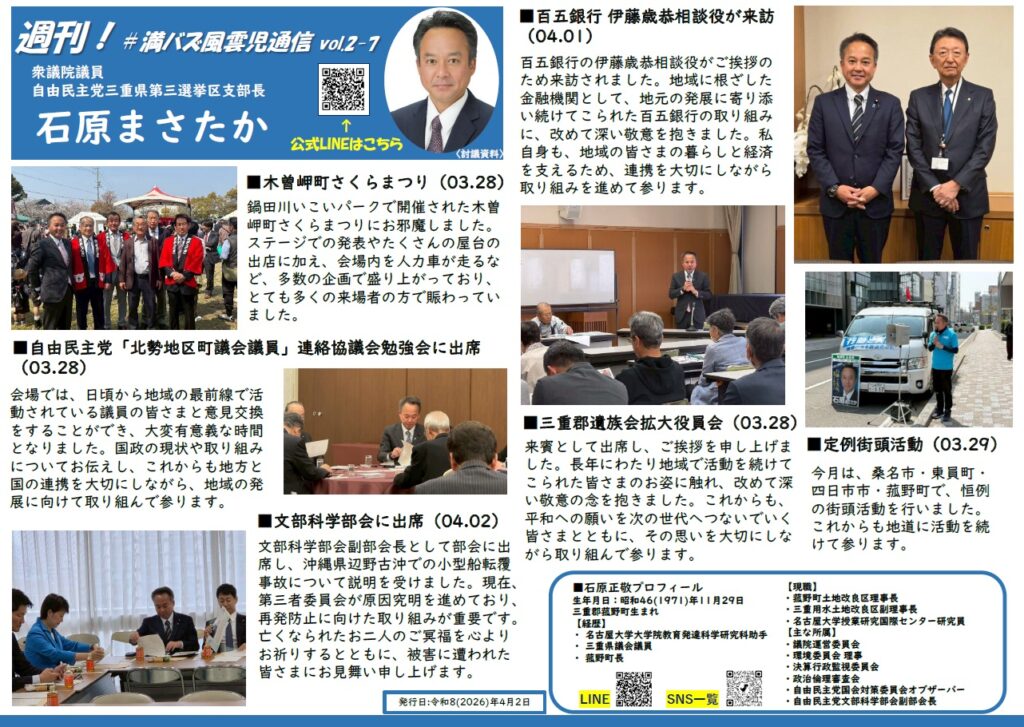 週刊!#満バズ風雲児 通信 Vol.2-7(20260402) 政治国内週刊通信 2026年4月2日 『週刊!#満バズ風雲児 通信』Vol.2-7です。 週刊!#満バズ風雲児 通信 Vol.2-7(発行日:2026年4月2日) ※クリックするとPDFファイルが開きます。